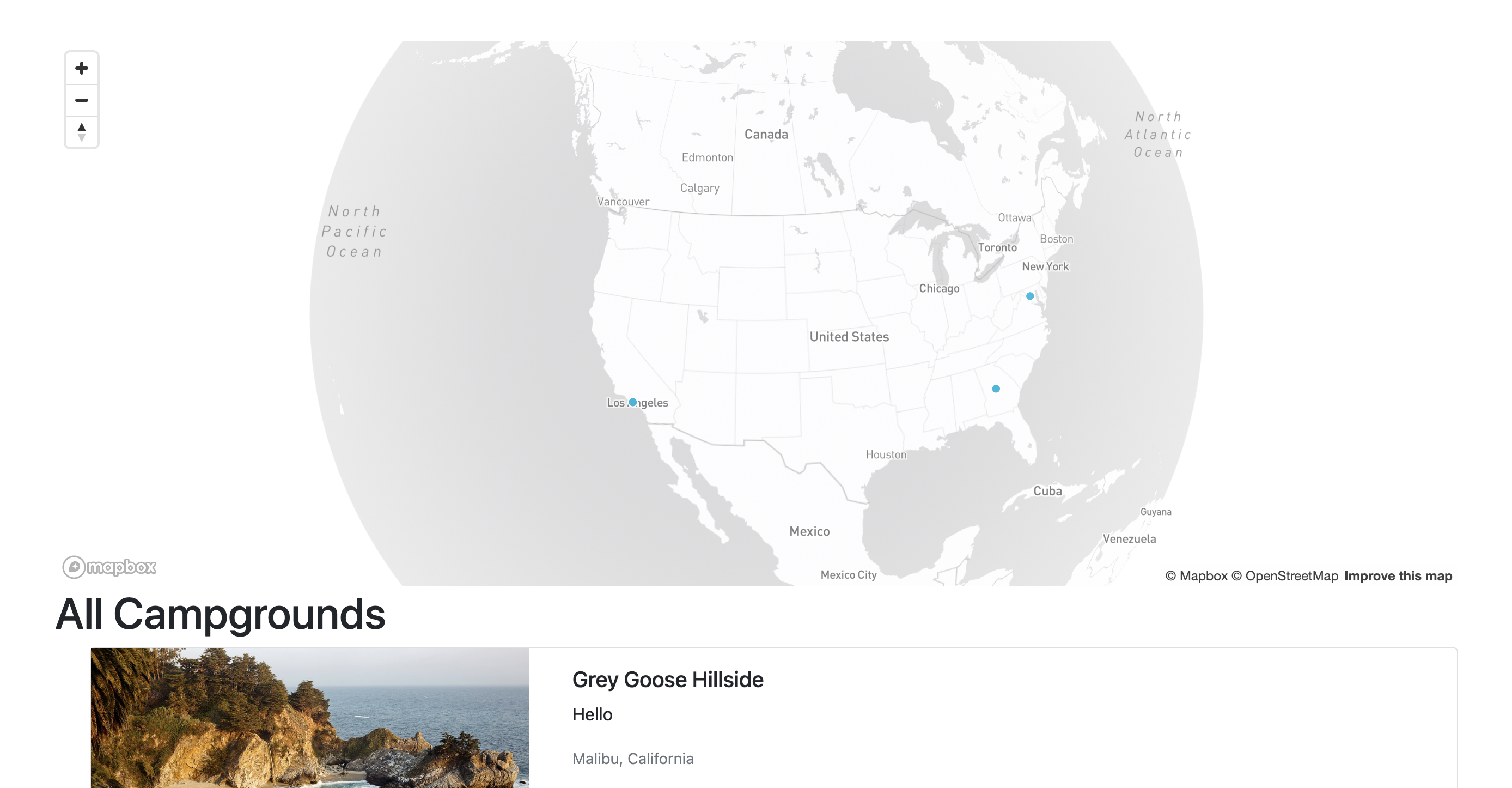 This application has full CRUD operations for its campgrounds and reviews features. Users also must be authenticated to create a campground and go through authorization to edit their camps and reviews. This application lays down the groundwork for my knowledge and skills involved in connecting to a database, writing routes, and using features like PassportJS and Cloudinary.